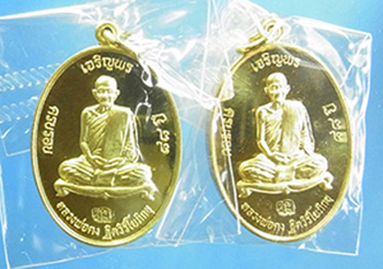 2 เหรียญเจริญพร หลวงพ่อคง วัดเขากลิ้ง จ.เพชรบุรี ปี 2553 เนื้อทองทิพย์