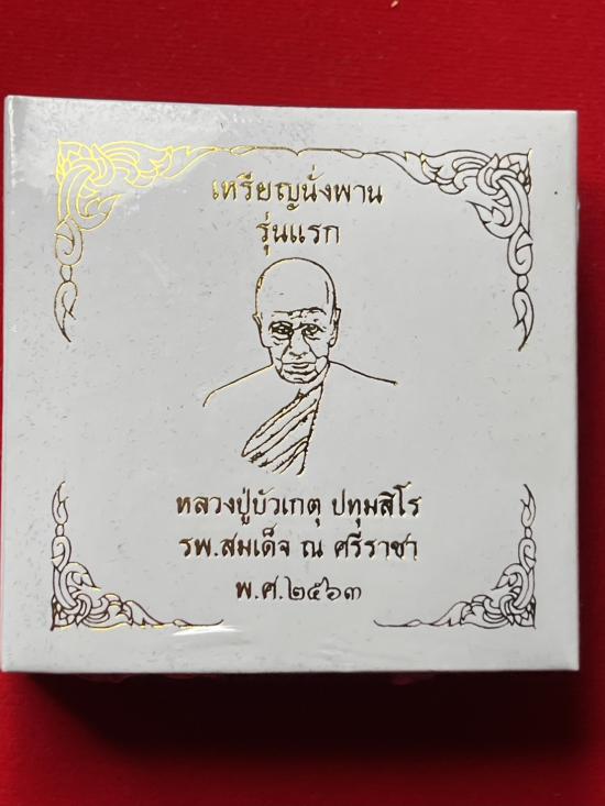 เหรียญนั่งพาน รุ่นแรก หลวงปู่บัวเกตุ ปทุมสิโร 1กล่อง มี 2 องค์ ไม่แกะซีล