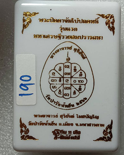 พระปิดตาจัมโบ้ปลดหนี้ รุ่นแรก มหาเศรษฐีรวยสมปรารถนา พระอาจารย์สุริยันต์ โฆสปัญโญ วัดป่าวังน้ำเย็น จ.มหาสารคาม ปี2566 เนื้อฟ้าลายเสือ โรยว่านสาวหลง เลขโค๊ต 190 พร้อมกล่องเดิม
