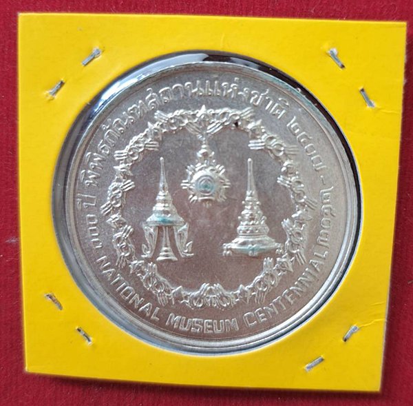 เหรียญกษาปณ์ชนิดราคา 50 บาท ที่ระลึก 100ปี พิพิธภัณฑ์สถานแห่งชาติ ปี2517 ( เนื้อเงิน )