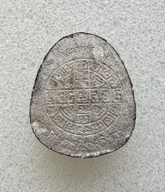 พระปิดตายันต์ดวงเล็ก ปี 2523 สมเด็จพระญาณสังวร (เจริญ) วัดบวรนิเวศนิเวศน์ (เนื้อผงใบลานตะกรุดเงิน)