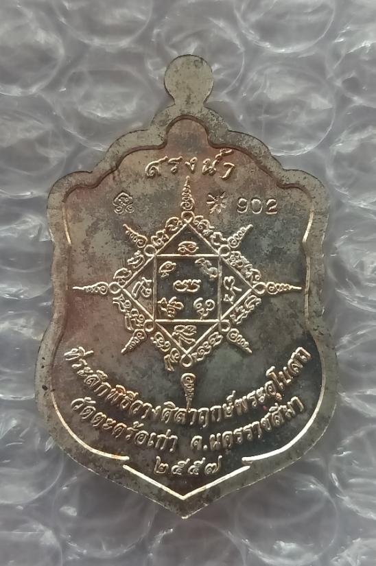 หลวงพ่อเพ็ชร์ วัดตะคร้อเก่า จะ.นครราชสีมส รุ่นเสมาสรงน้ำ ปี57 เนื้อนวะโลหะพรายเงิน