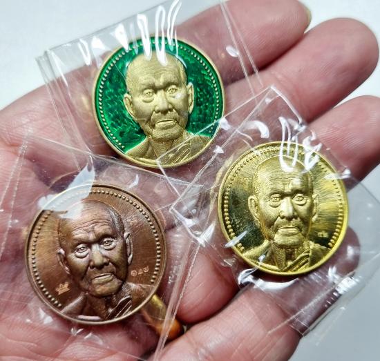 เหรียญโชคดี หลวงพ่อรวย วัดมาบตะพุด คละเนื้อ 3เหรียญ พร้อมกล่อง