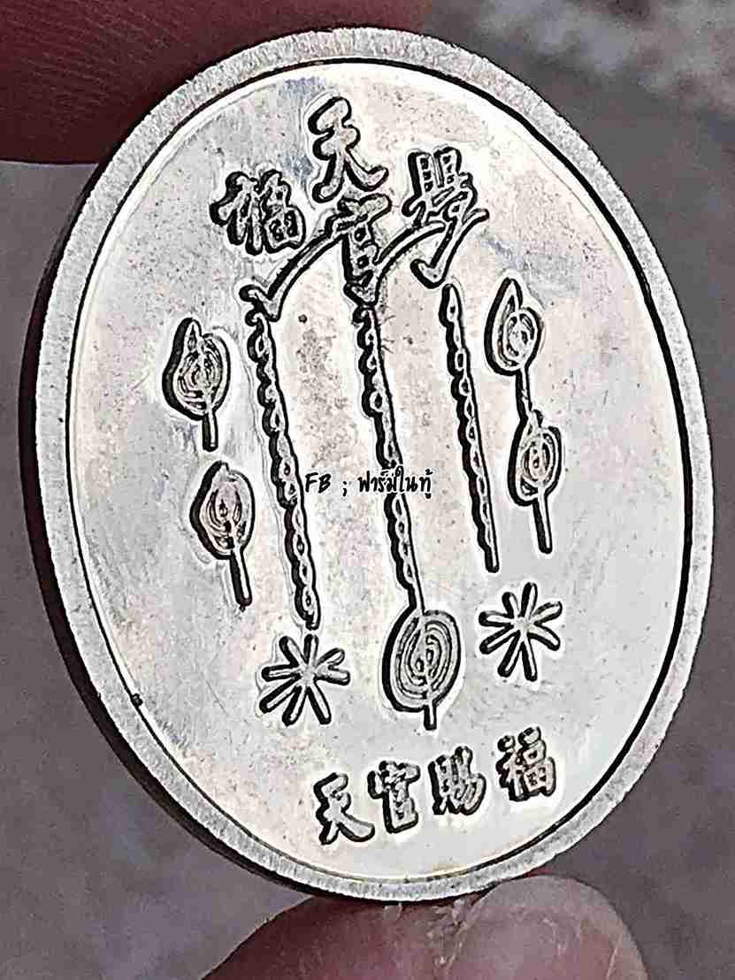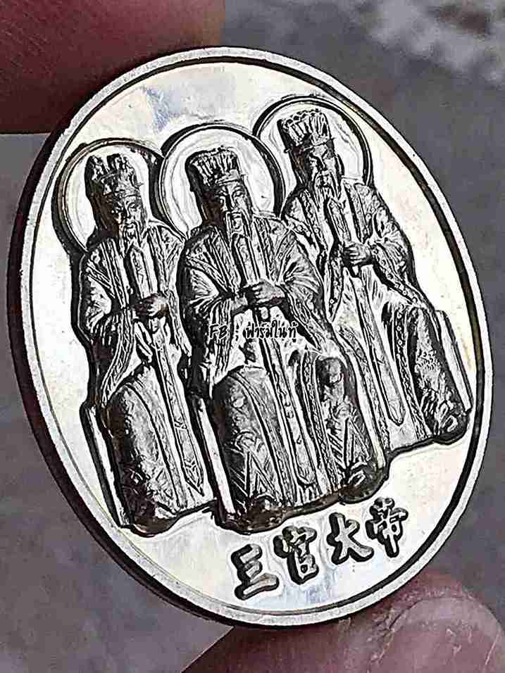 *ที่ฆ้อนมีอีกเยอะครับ เคาะเดียว*เหรียญองค์เทพเจ้า (สามเทพเจ้าผู้เป็นใหญ่) ซึ่งท่านเป็นเทพชั้นผู้ใหญ่ เป็นเจ้าของยันต์ฟ้าประทานพรที่่อาแปะโรงสีได้นำเอาฮู้ยันต์ฟ้าประทานพรมาประทับไว้หลังเหรียญ