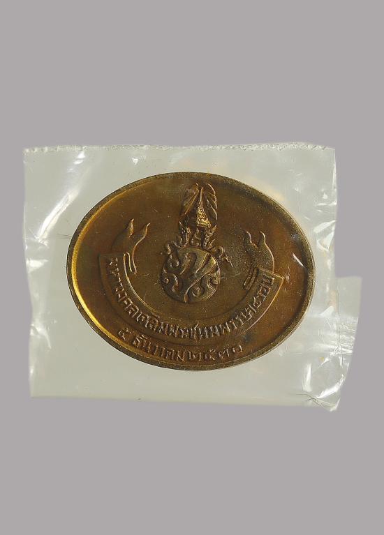 เหรียญพระนอน หลัง ภปร. พิธีใหญ่วัดโพธิ์ ฉลองในหลวงพระชนมายุครบ 5 รอบ พ.ศ. 2530 ซองเดิม