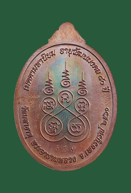 เหรียญเจริญพร เมตตามหานิยม อายุวัฒนะมงคล 80 ปี เนื้อทองแดงมันปู