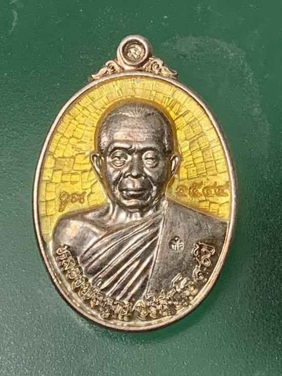เหรียญหลวงพ่อคูณ รุ่น 90 ฉลองวิหารเทพวิทยาคมปี 2556 เนื้อเงินลงยาสีเหลืองนอนกล่อง หมายเลข 1544 น้ำหนักพระ14.16กรัม