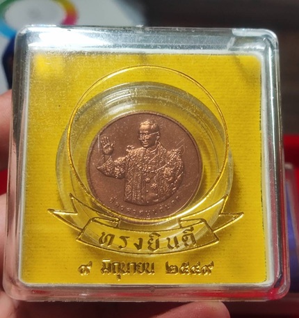 วัดใจ 120 บาท เหรียญในหลวง ร.๙ "ทรงยินดี" "ที่ระลึกสร้างพิพิธภันฑ์พุทธมณฑล" ปี 2549 สวยมาก...กล่องเดิมๆ