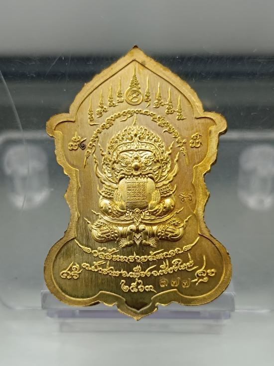 เหรียญท้าวเวสสุวรรณโณ รุ่น เจ้าสัว วัดสันทรายต้นกอก จ.เชียงใหม่ ปี2563 (ขนาดเหรียญสูง 4.0 ซม.) เนื้อสัตตะโลหะลงยาสีน้ำเงิน หมายเลข 377