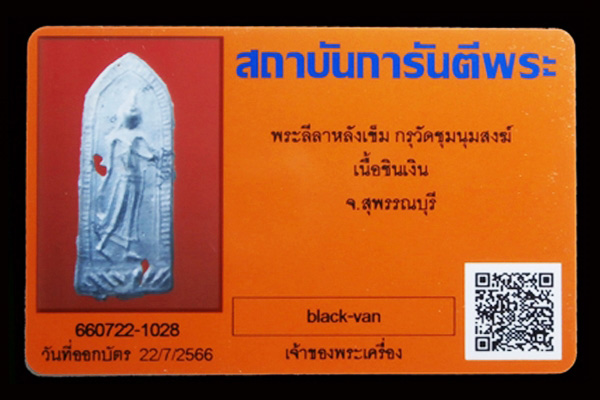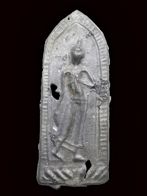 พระลีลาหลังเข็ม กรุวัดชุมนุมสงฆ์ เนื้อชินเงิน จ.สุพรรณบุรี พร้อมบัตรรับรอง G-pra ครับ