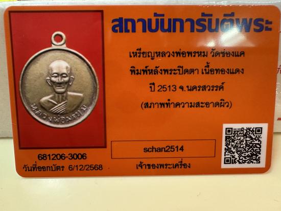 เหรียญหลวงพ่อพรหม วัดช่องแค พิมพ์หลังพระปิดตา เนื้อทองแดง พร้อมบัตรรับรองของG