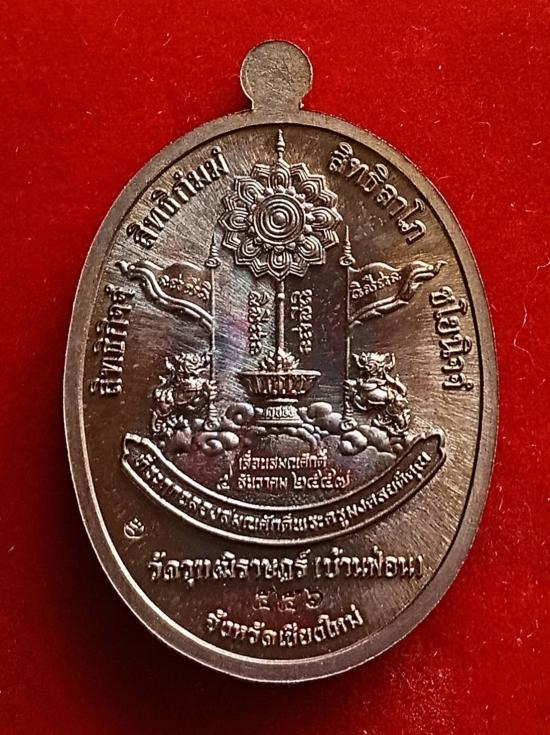 เหรียญเลื่อนสมณศักดิ์ เนื้อทองแดงผิวรุ้ง หมายเลข 556 สร้างปี 2557 หลวงปู่ครูบาดวงดี ยติโก วัดวุฒิราษฎร์ (บ้านฟ่อน) อ.หางดง จ.เชียงใหม่