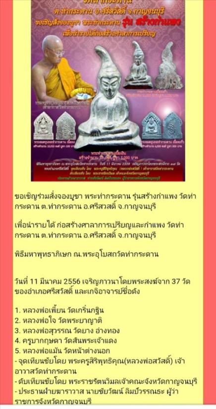 ตอกโค็ตชัดเจน เพื่อนำรายได้ ก่อสร้างศาลาการเปรียญและกำแพง วัดท่ากระดาน ต.ท่ากระดาน อ.ศรีสวสดิ์ จ.กาญจนบุรี พิธีมหาพุทธาภิเษก ณ.พระอุโบสถวัดท่ากระดาน