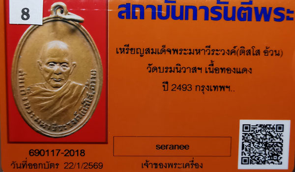 เหรียญสมเด็จพระมหาวีระวงศ์(ติสโสอ้วน) วัดบรมนิวาสฯ เนื้อทองแดง ห่วงเดิม ปี2493 จ.กรุงเทพฯ + บัตรG-pra สภาพเดิมค่ะ |