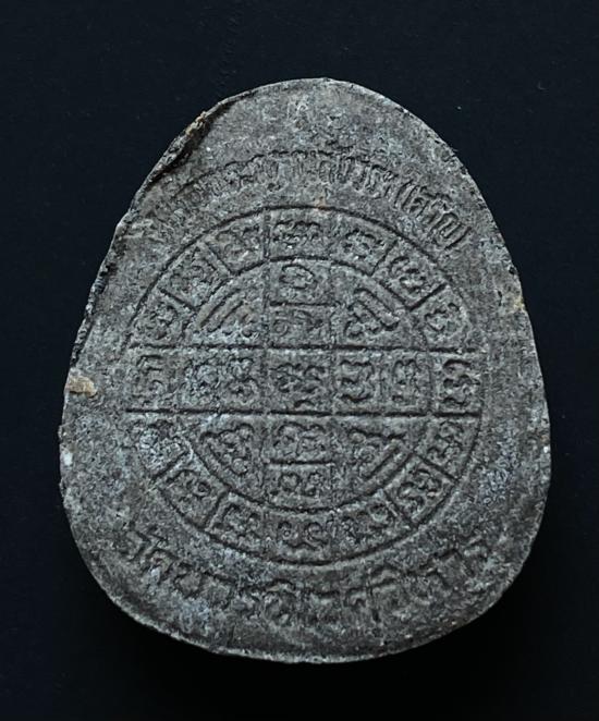 พระปิดตายันต์ดวงเล็ก ปี2523 สมเด็จพระญาณสังวร (เจริญ) วัดบวรนิเวศ_(เนื้อผงใบลาน)_