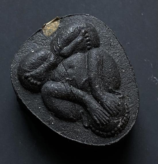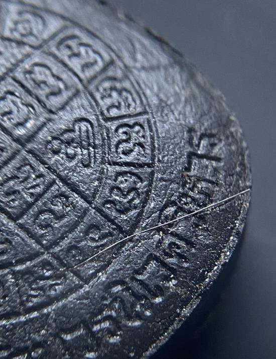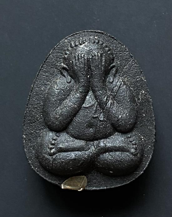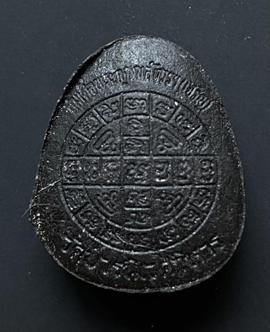 พระปิดตายันต์ดวงเล็ก ปี2523 สมเด็จพระญาณสังวร (เจริญ) วัดบวรนิเวศ_(เนื้อผงใบลานดำปลดหนี้)_พิมพ์หนา_มีเส้นเกศา_