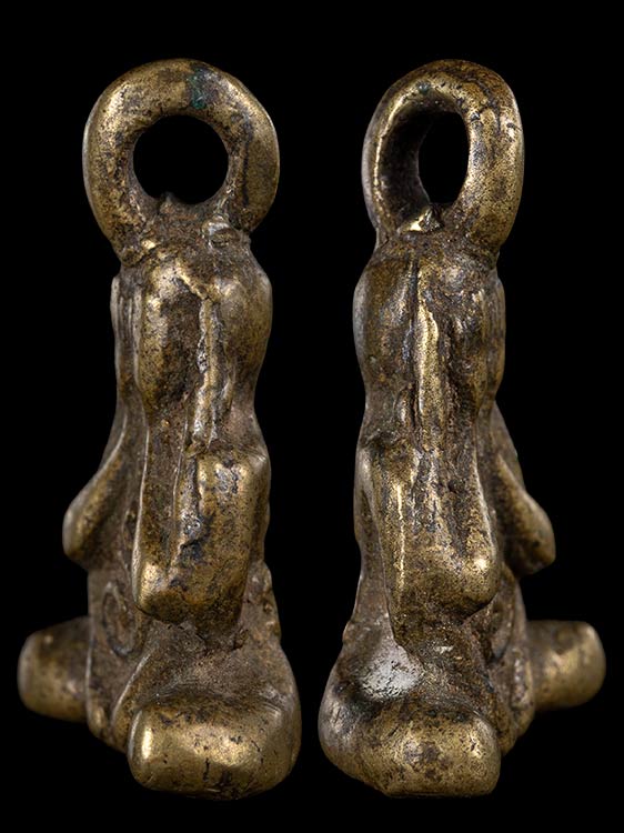 พระปิดตาหลวงพ่อยุ้ย วัดบางกะปิ กรุงเทพ รุ่นแรก เนื้อโลหะผสมปี2485พร้อมบัตร