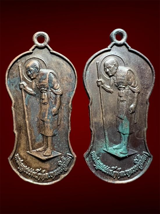 ((เคาะแรก 2 เหรียญ)) เหรียญไม้เท้า หลังยันต์พิมพ์เล็ก หลวงปู่เผือก วัดสาลีโข นนทบุรี ปี 2522 เนื้อทองแดง