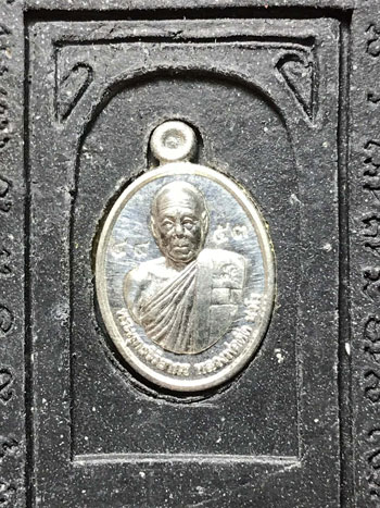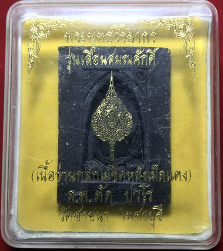 พระเนื้อผงว่านรูปเหมือน รุ่นเลื่อนสมณศักดิ์ (เนื้อว่านกลักไม้ขีด หลังฝังเหรียญเม็ดแตงเนื้อดีบุก ตอกโคตและหมายเลข) หลวงพ่อตัด ปวโร (พระพุทธวิริยากร) วัดชายนา จ.เพชรบุรี สร้างปี 2551 หายาก สร้างน้อย