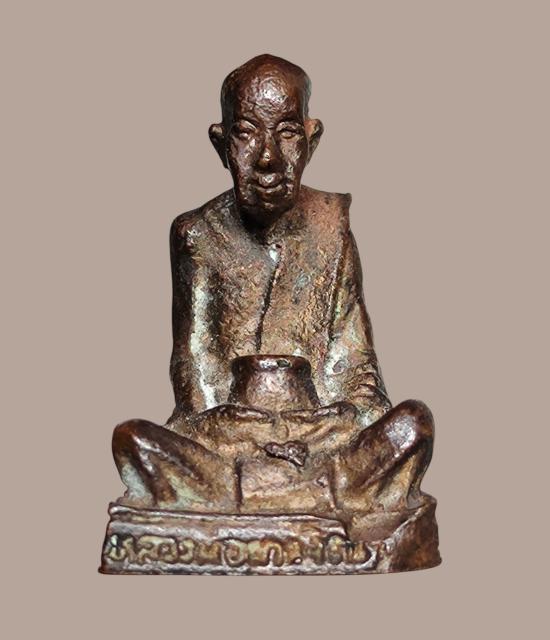รูปหล่อหลวงพ่อผาง พิมพ์อุ้มบาตร ปี 2519 เนื้อทองแดงรมดำ วัดอุดมคงคาคีรีเขต จ.ขอนแก่น