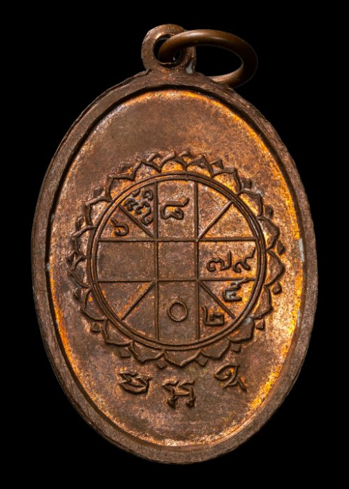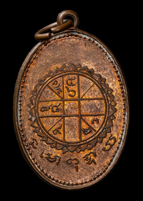 เหรียญยันต์ดวงพุทธาลัย ยันต์ดวงใหญ่ หลวงพ่อพิณ วัดอุบลฯ จ.ราชบุรี เนื้อทองแดงผิวไฟ ปี2507