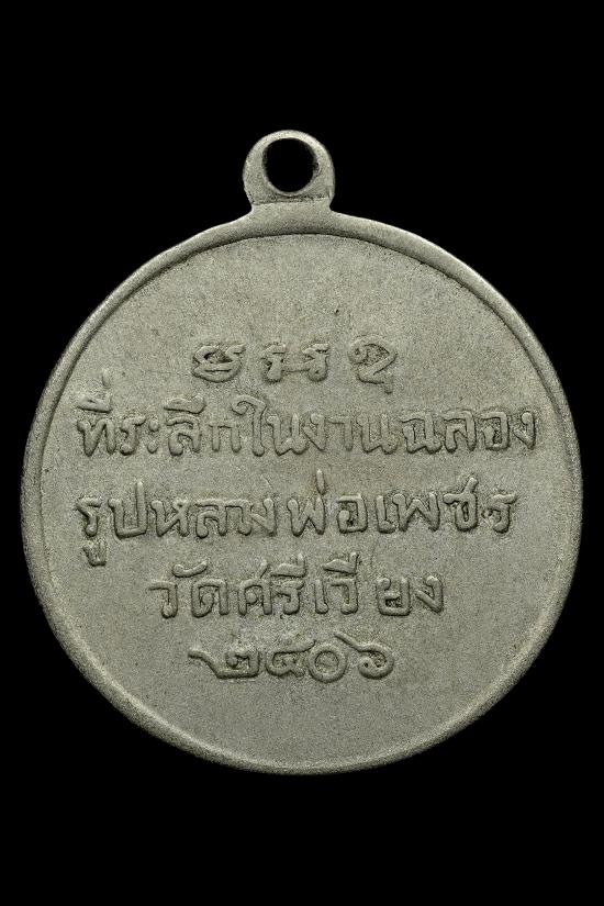 เหรียญหลวงพ่อเพชร วัดศรีเวียง อ.ไชยา จ.สุราษฎร์ธานี ปี 2506.."ที่ระลึกงานฉลองรูปหลวงพ่อ"..เนื้ออัลปาก้า เหรียญประสบการณ์ น่าสะสม