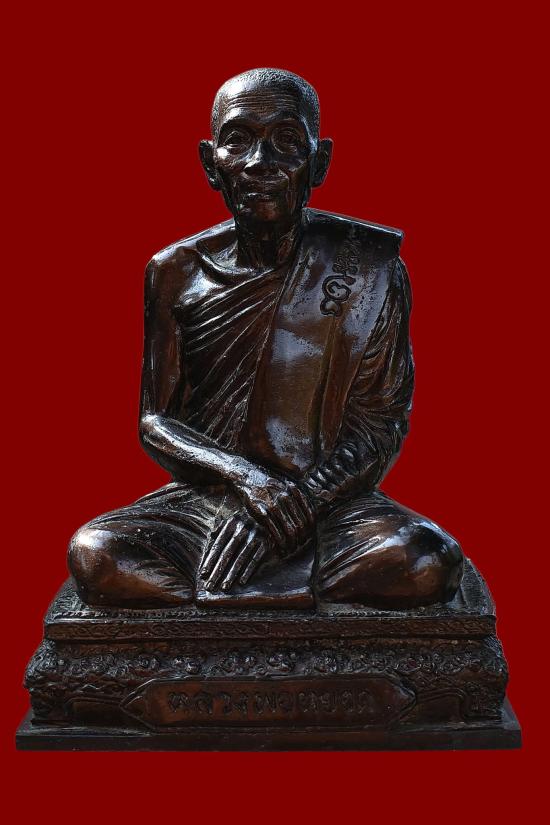 พระรูปเหมือนขนาดบูชา หลวงพ่อหยอด วัดแก้วเจริญ จ.สมุทรสงคราม เนื้อโลหะ ใต้ฐานอุดผงว่านฝังพระ พระบ้าน ผิวหิ้ง
