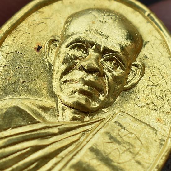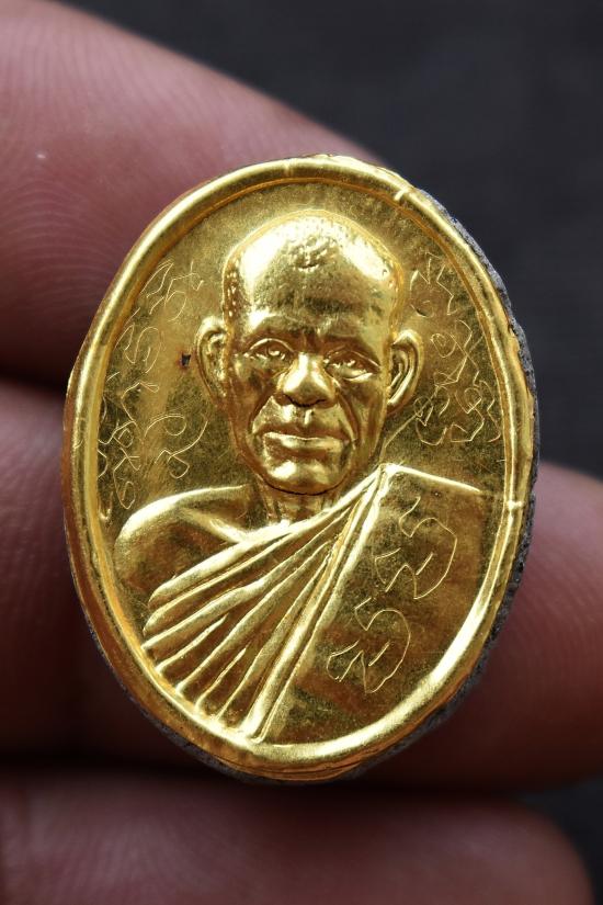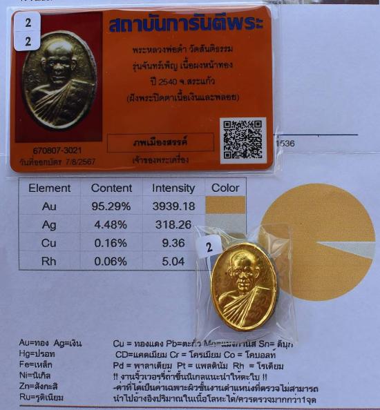 พระรูปเหมือน รุ่นจันทร์เพ็ญ เนื้อผงหน้าแผ่นทองคำ ด้านหลังฝังพระปิดตา เนื้อเงิน + พลอย พร้อมรอยจารยันต์ สร้างน้อย ปี 2540 หลวงพ่อดำ วัดสันติธรรม จ.สระแก้ว + บัตรรับรองพระแท้การันตีพระ