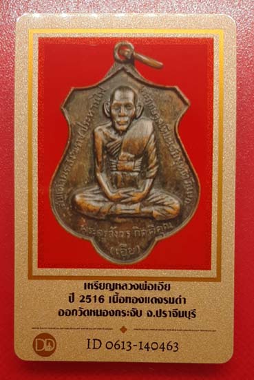 เหรียญหลวงพ่อเอีย ออกวัดหนองกระจับ เนื้อทองแดง ปี2516 จ.ปราจีนบุรี พร้อมบัตรรับรองครับ |