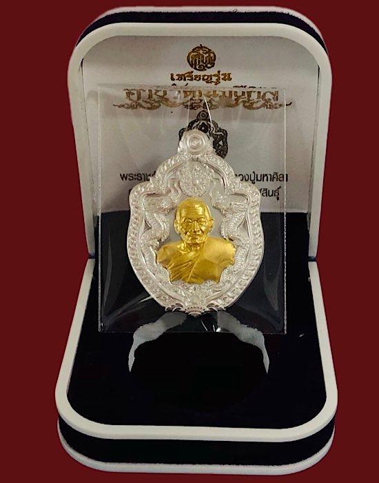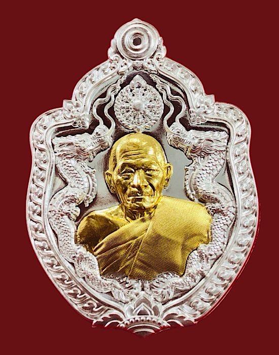 หลวงปู่มหาศิลา อายุวัฒมงคล81 มังกรคู่ เนื้อเงิน ผิวกระจกสวยๆ จมูก100 เลข151กล่องเดิม สวยแชมป์ๆ