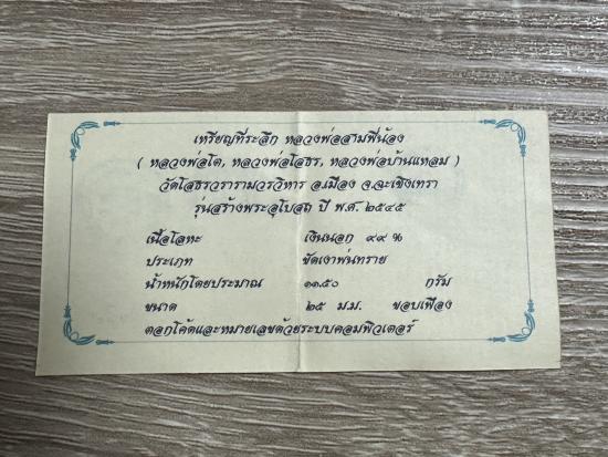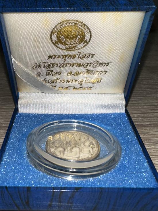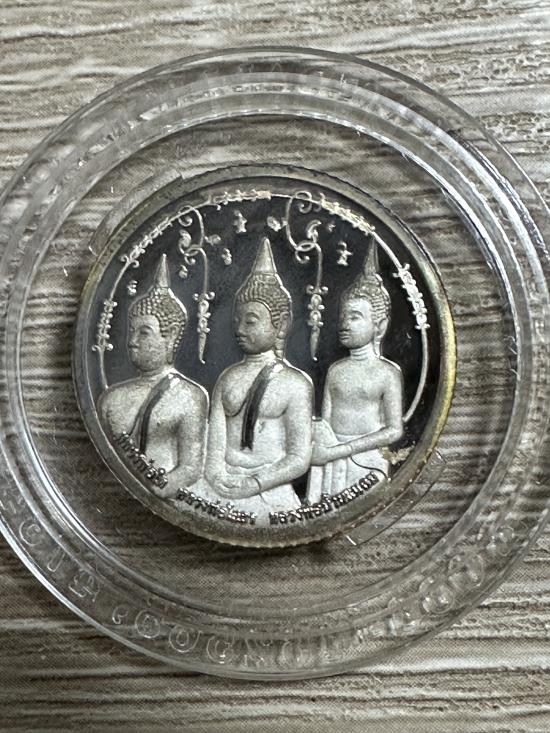 วัดใจแดงแรก เหรียญที่ระลึก หลวงพ่อสามพี่น้อง หลวงพ่อโต หลวงพ่อโสธร หลวงพ่อวัดบ้านแหลม รุ่นสร้างพระอุโบสถ ปี 2545 เนื้อเงินนอก 99%