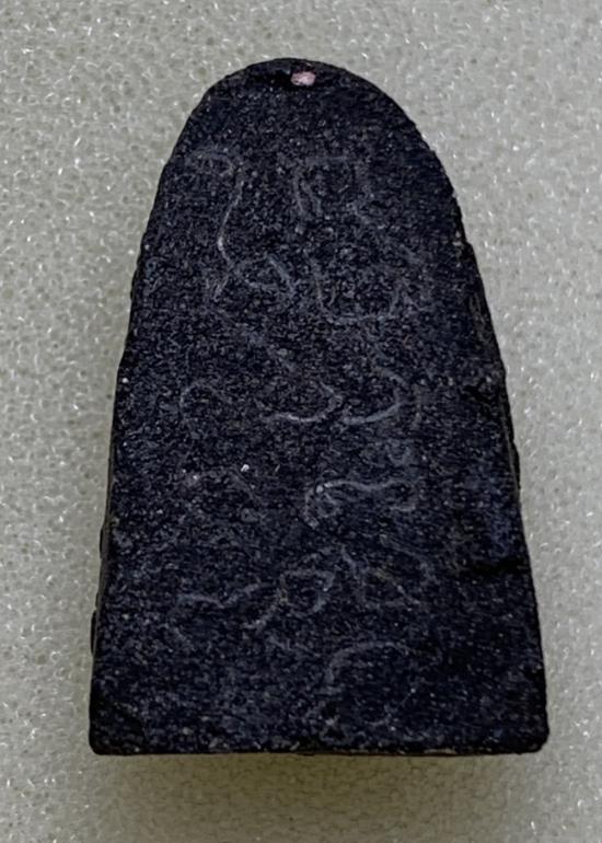 หลวงพ่อมุม วัดปราสาทเยอร์ จ.ศรีสะเกษ พิมพ์เล็บมือ เนื้อว่านดำ หลังจาร |