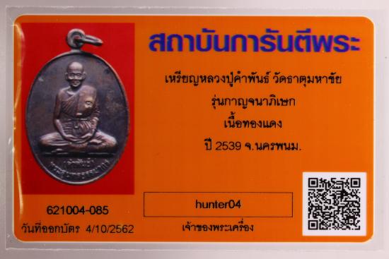 เหรียญหลวงปู่คำพันธ์ วัดพระธาตุมหาชัย รุ่นกาญจนาภิเษก เนื้อทองแดง ปี2539
