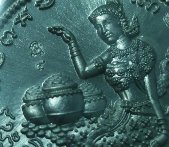 เหรียญนางกวัก โภคทรัพย์ เนื้อชินเงิน เลข 4 พระอาจารย์ต้อม วัดท่าสะแบง ร้อยเอ็ด