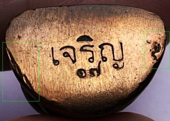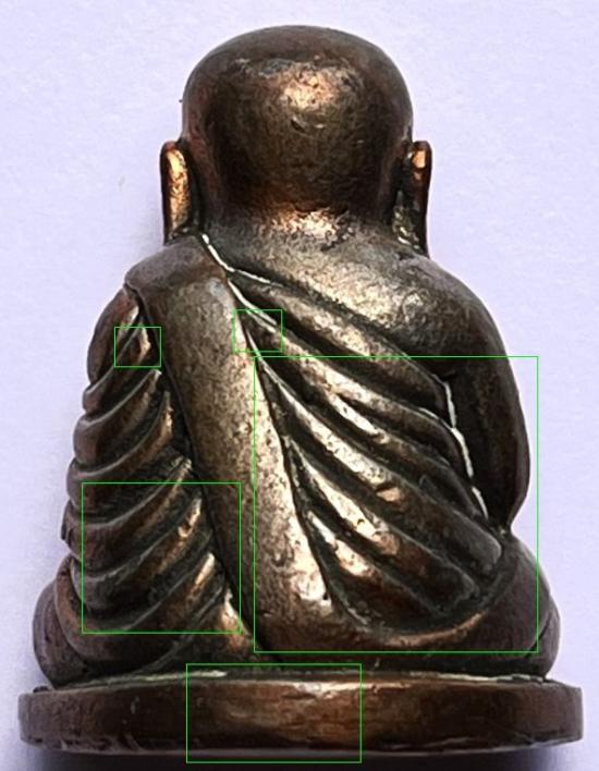 ***************** ด้านหลังตำหนิองค์พระทั่วองค์ ตำหนิเนื้อยุบหลายจุด+ตำหนิขอบฐาน ที่วงสีเขียวทั้งหมด