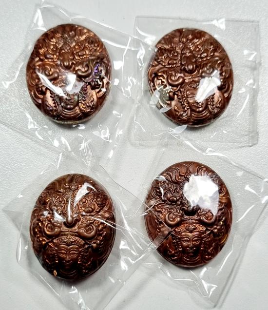 เหรียญพญาราหู พระอาจารย์ประสูติ วัดในเตา เหรียญเทพราหู เนื้อสัมฤทธิ์แดงกรรมการ ฝังเม็ดกริ่ง 4องค์