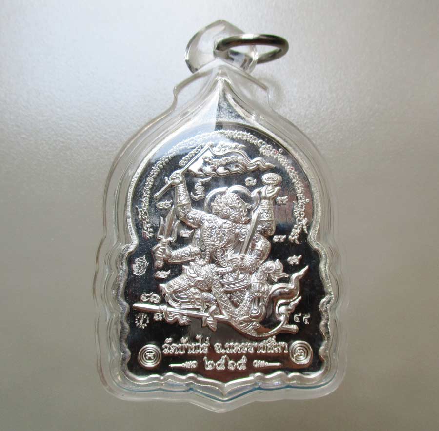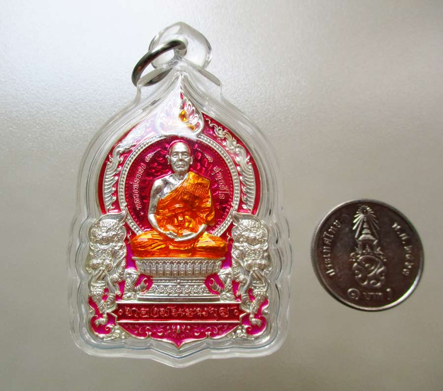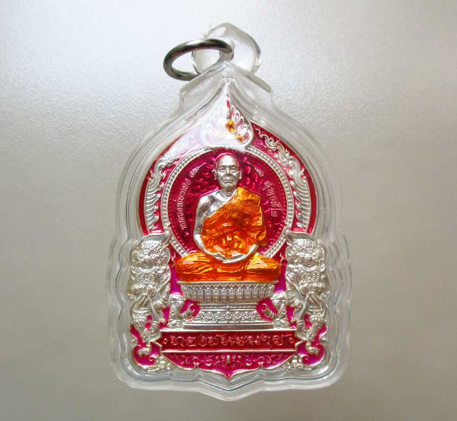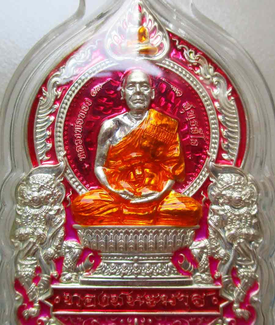 เหรียญนั่งพาน รุ่น ทองชนะมาร หลวงพ่อทอง วัดบ้านไร่ จ.นครราชสีมา พ.ศ.2565 เนื้อเงินลงยา 4 สี ตอก 2 โค๊ต ตอกเลข เลี่ยมกันน้ำพร้อม