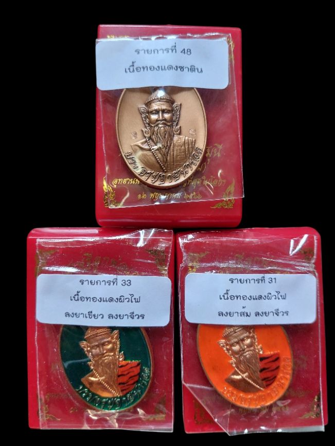 เหรียญบรมครูปู่ฤาษีนารอด รุ่นเเรก เศรษฐีลุกพ่อแก่ พ่อพล ทองเนียม เนื้อทองเเดง 3 เหรียญ เคาะเดียว