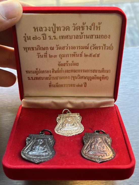 ชุดกล่องกรรมการหลวงปู่ทวด วัดช้างให้ รุ่น 70ปี โรงเรียนบ้านสามกอง ภูเก็ต ปี2549 สวยเดิม3องค์( เงิน นวะ ทองแดงรมดำ)