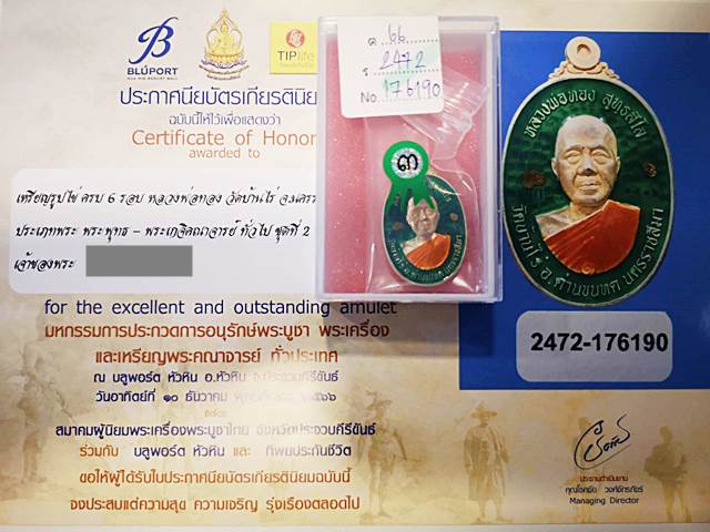 เหรียญรูปไข่ ครบ 6 รอบ ปี 2564 หลวงพ่อทอง วัดบ้านไร่ ติดรางวัลที่ 3 งานสมาคม #88