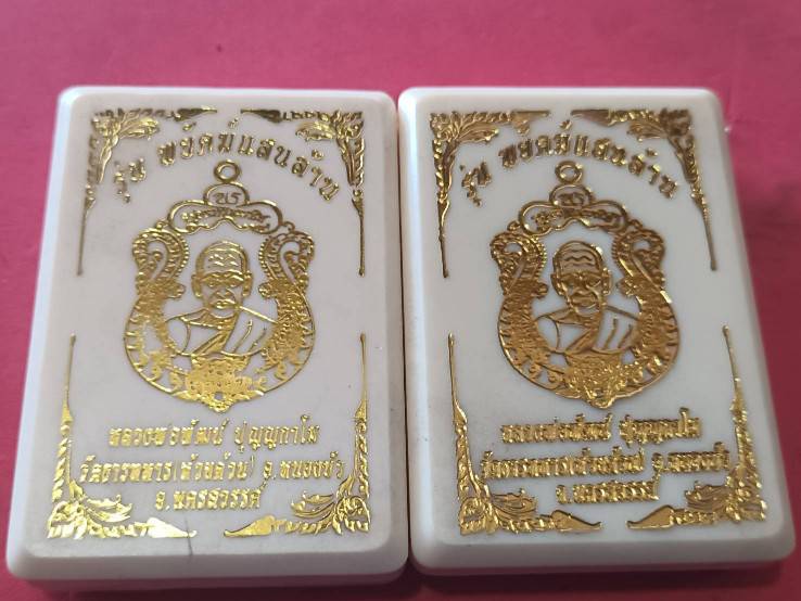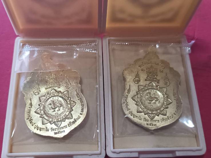 แพ็คคู่ 2เหรียญพยัคฆ์แสนล้าน หลวงพ่อพัฒน์ เนื้อทองทิพย์ลงยาจีวร No.9428,27489พร้อมกล่องเดิม