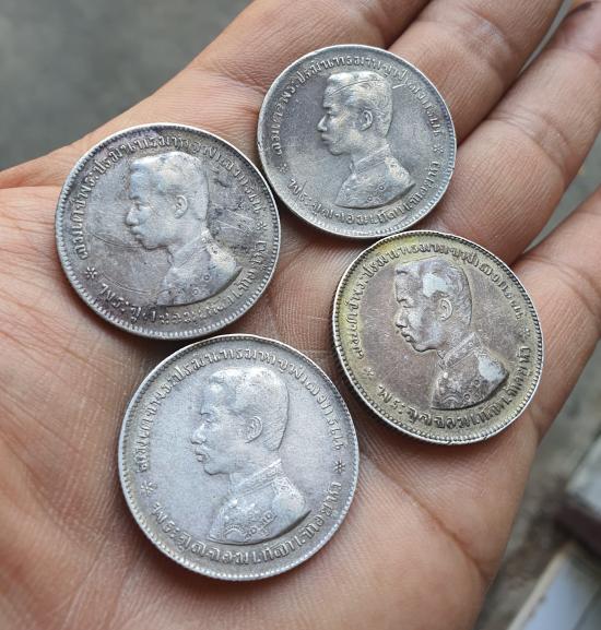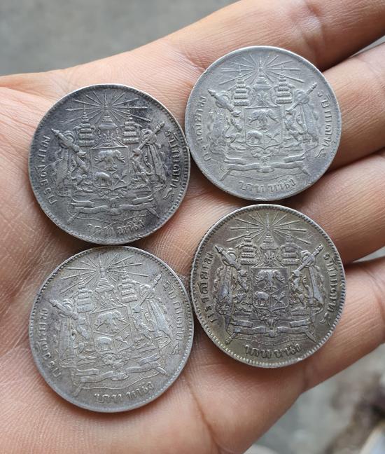 เหรียญบาทหนึ่ง รัชกาลที่ 5 (เนื้อเงิน)จำนวน4เหรียญ