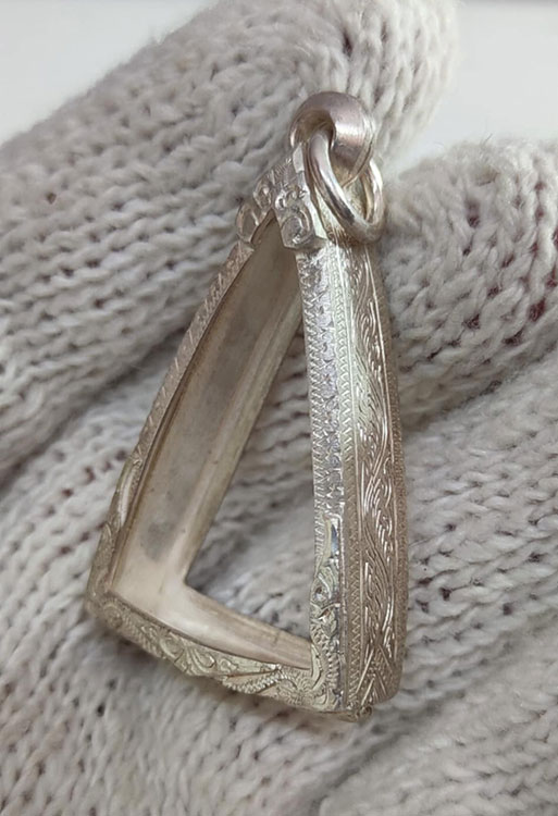 ตลับเงินแท้ แกะลาย ใสนางพญา หรือ ใกล้เคียง ขนาดประมาณ สูง 3.2 ซม.กว้าง 1.5 ซม.น้ำหนัก 13.42 กรัม ไม่เคยใช้ สภาพ สวย สมบูรณ์