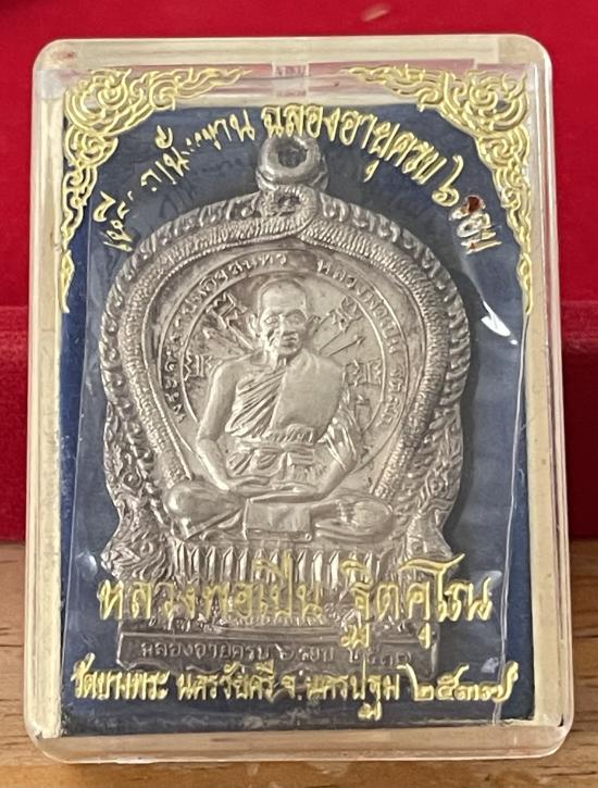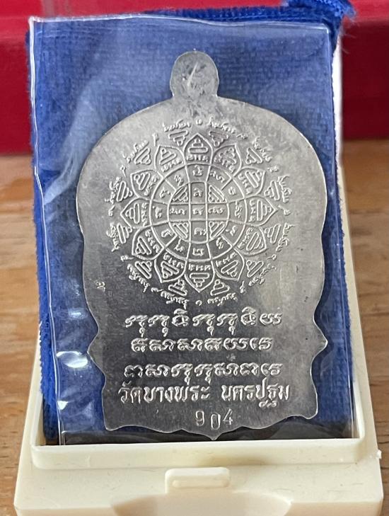 เหรียญนั่งพาน ๖ รอบ ๒๕๓๗ เนื้อเงิน หมายเลข 904 หลวงพ่อเปิ่น วัดบางพระ จ.นครปฐม พร้อมกล่องเดิม