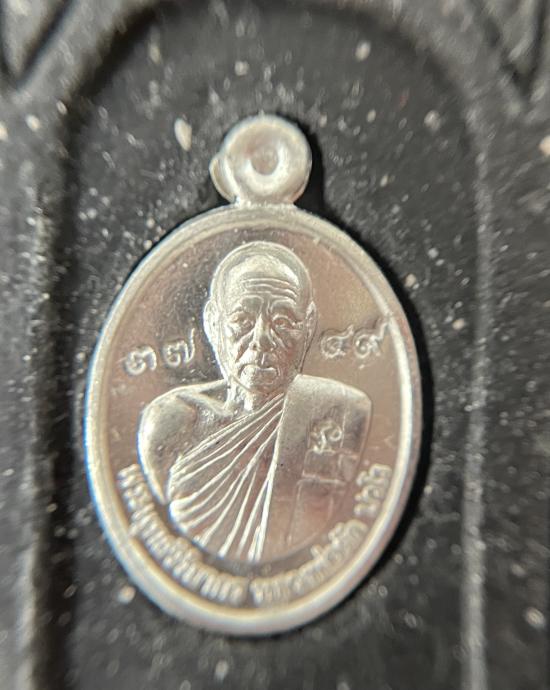 พระเนื้อผงว่านรูปเหมือน รุ่นเลื่อนสมณศักดิ์ เนื้อว่านกลักไม้ขีด หลังฝังเหรียญเม็ดแตง ตอกโคตและหมายเลข ๓๗๔๙ หลวงพ่อตัด ปวโร วัดชายนา