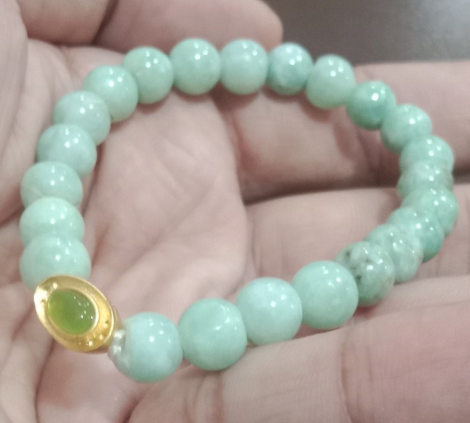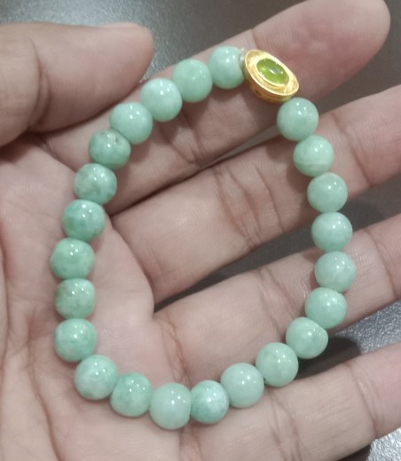 สร้อยข้อมือหยกพม่า/ขนาด8มิล/ร้อยยางยืดใส่สบาย/สินค้ามือ1 |