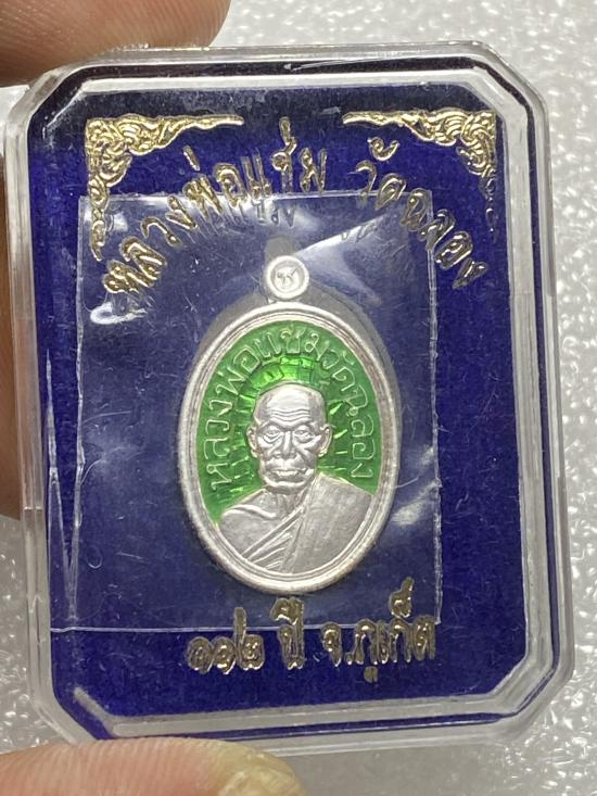 เหรียญเงินเนื้อเงินลงยาเขียว หลวงพ่อแช่ม วัดฉลอง ภูเก็ต รุ่น112ปี สวยเดิมนอนกล่อง