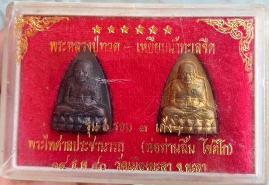 พระหลวงปู่ทวด เหยียบน้ำทะเลจืด รุ่น 6 รอบ 3 เด้ง ฯ พ่อท่านฉิ้น โชติโก ปี 40 วัดเมืองยะลา จ.ยะลา ชุด 2 องค์พร้อมกล่องเดิม