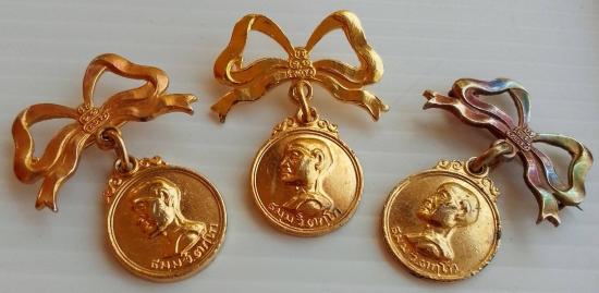 เคาะเดียวแดง.....เหรียญกลมเล็ก ท่านเจ้าคุณนรฯ พร้อมโบว์เข็มกลัด หลังยันต์น้ำเ ต้า สภาพสวยสมบูรณ์ กะไหล่ทองเดิมๆ ปี 2513 รับจำนวน 3 เหรียญ