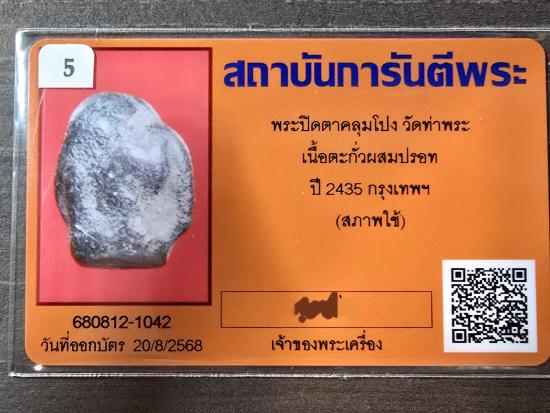 ปิดตา คลุมโปง วัดท่าพระ เนื้อปลอด ปี2435 พร้อมบัตรรับรองครับ |